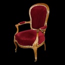 roter Samtsessel mit rundem Rücken, Holzlehnen mit Samtbezug, Holz geschwungen